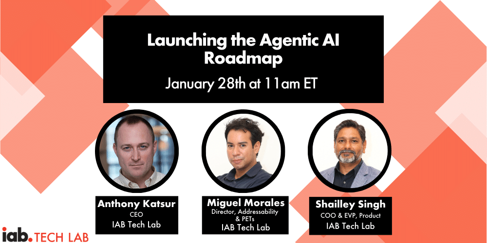 The use of Agentic AI in digital advertising is all everyone in the ecosystem is talking about, but how will it really scale unless existing standards are part of its evolution. IAB Tech Lab’s Anthony Katsur, Shailley Singh and Miguel Morales will discuss how the IAB Tech Lab Agentic Roadmap Protects Scale, Trust, and Investment in this critical kick off to 2026.